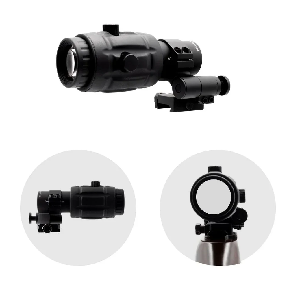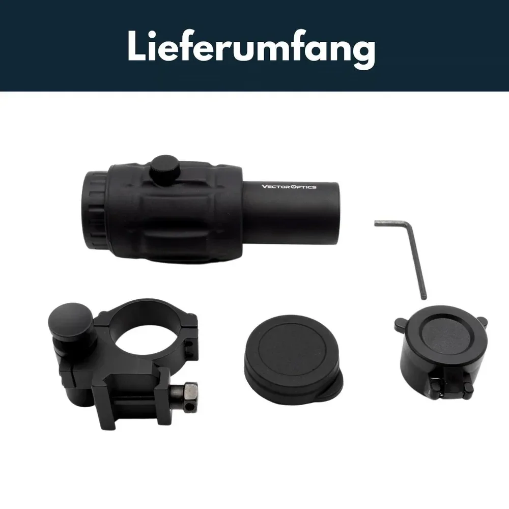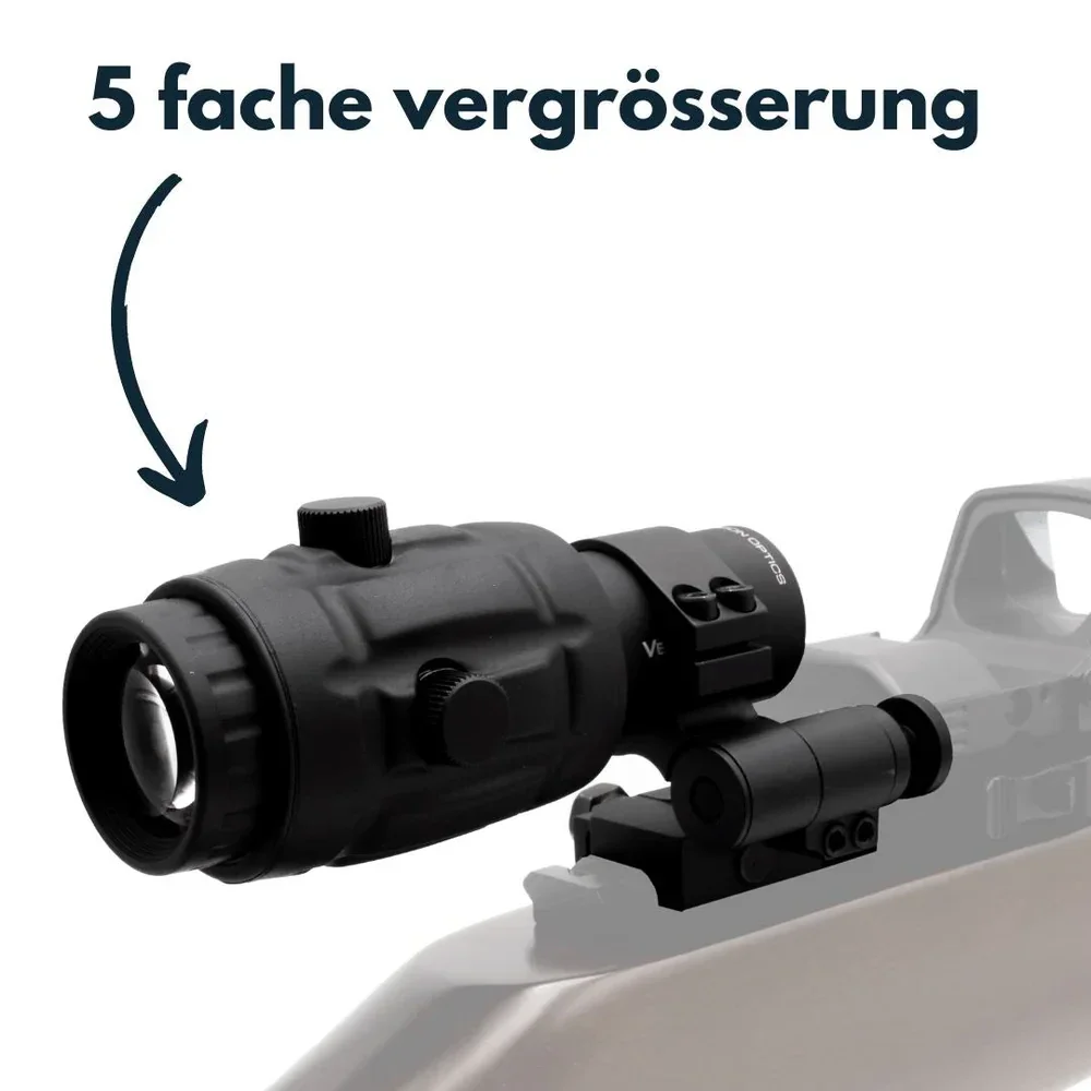 Der Vergrößerer (Magnifier) verwandelt in Sekundenschnelle alle gängigen Reflexvisiere in hochwertige, präzise Zielfernrohre mit 3- 4- oder 5-fach-Vergrößerung.