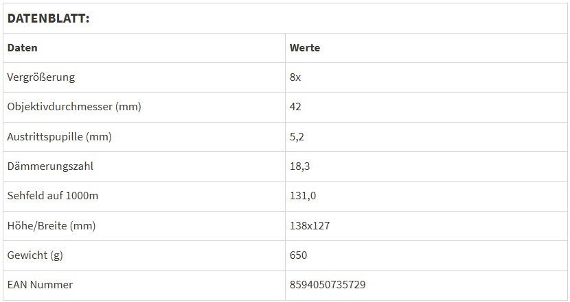 Das Fluorid-HD-Optiksystem bietet eine hervorragende Bildqualität in dieser Kategorie, sowie ein festes, gummiummanteltes Magnesiumgehäuse für eine hohe Zuverlässigkeit - auch unter widrigsten Umgebungsbedingungen. Außerdem sind die Ferngläser wasserfest, verfügen über ein abnehmbares Dural-Okular und besitzen eine dielektrische Oberflächenbehandlung der Prismen. Inklusive Trageriemen.