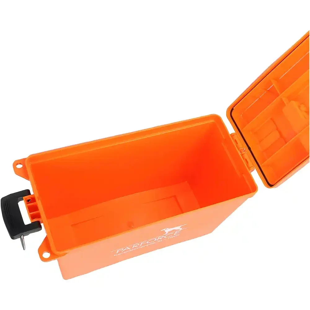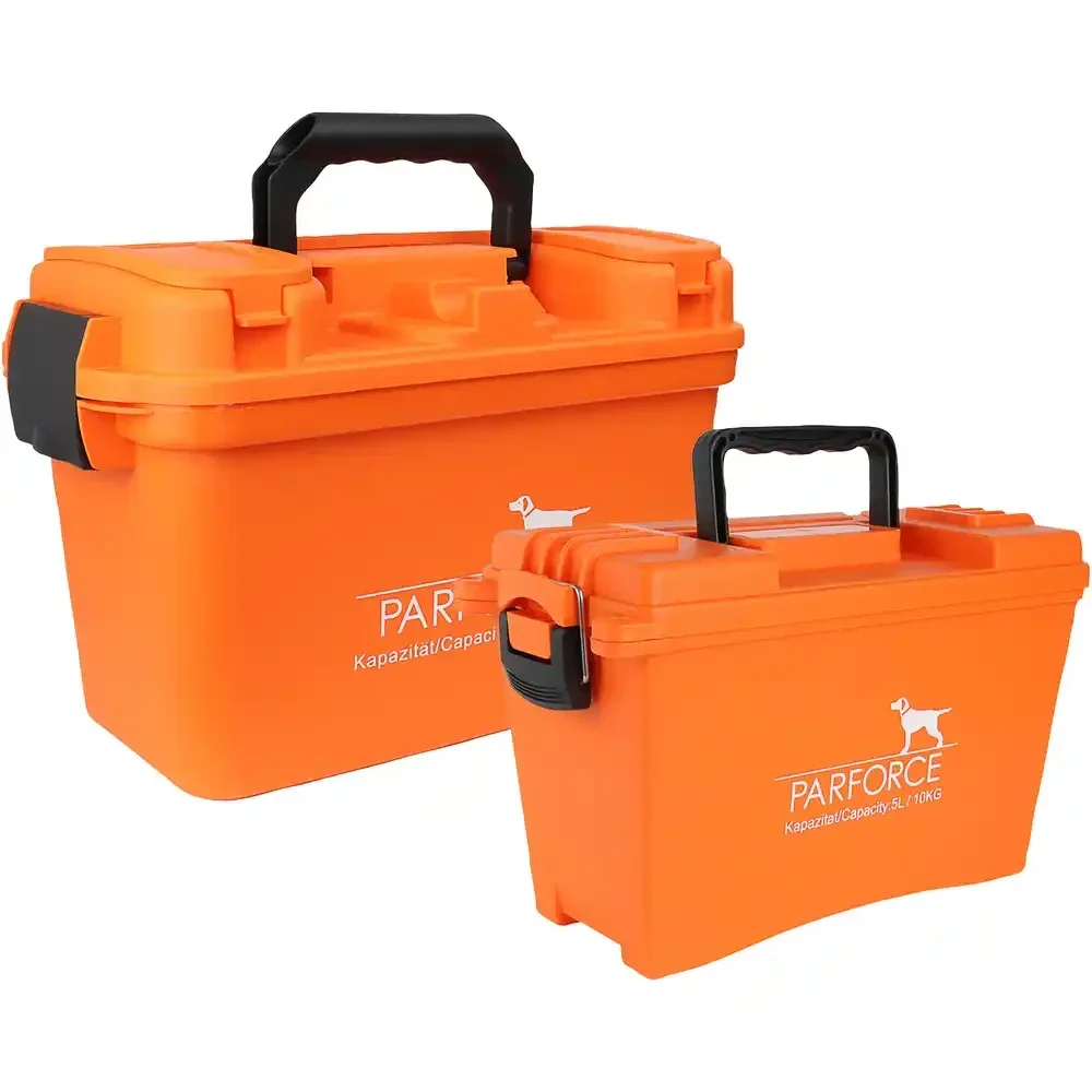 Die PARFORCE Transport- und Munitionsboxen sind ideal geeignet um Jagd- und Kfz-Utensilien, Werkzeug, Hundezubehör, Munition etc. zu transportieren. Die eingearbeitete Silikondichtung schützt vor Spritzwasser und dem Eindringen von Staub. Geformt aus robustem Polypropylen-Kunststoff ist eine extrem lange Haltbarkeit gewährleistet. Daher sind sie auch bei widrigen Umständen bedenkenlos einsetzbar. Ausgestattet mit einem angenehmen Tragegriff sind die Boxen komfortabel zu transportieren. Einkerbungen im Deckel machen die Kisten stabil stapelbar. Sie besitzen einen Klappverschluss und zwei Bohrungen zur möglichen Anbringung von Vorhängeschlössern (nicht inklusive).