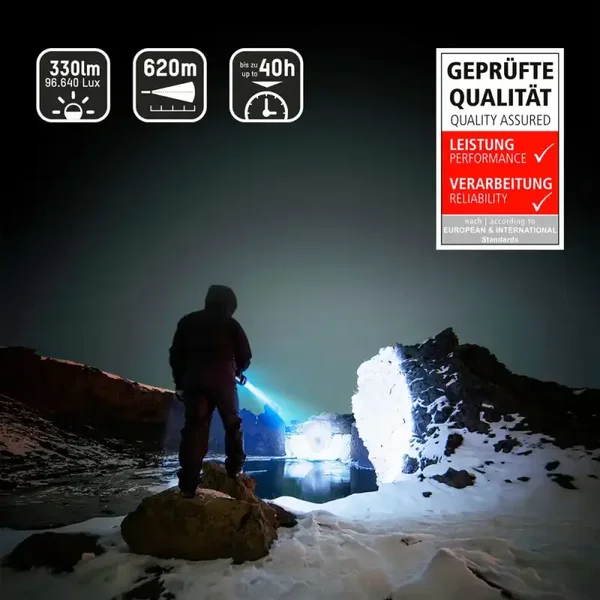 - Leuchtdauer: 7,5 Std. (100%), 40 Std. (20%)