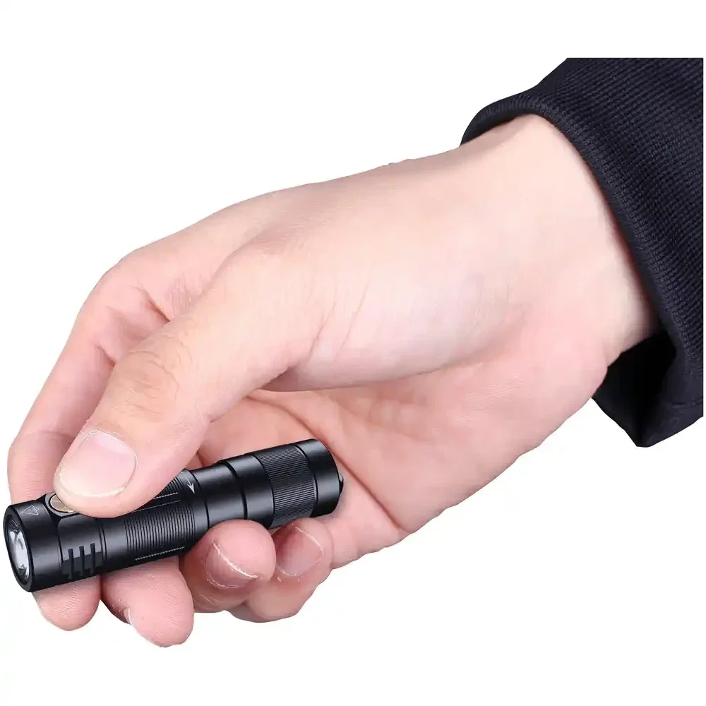 Die kompakte und robuste Fenix E09R Taschenlampe ist eine wiederaufladbare Hochleistungs-Taschenlampe die bis zu 600 Lumen mit einer Strahlweite von bis zu 124 Meter erreicht. Die kleine, leistungsstarke Taschenlampe ist über einen integrierten USB-Typ-C-Ladeanschluss auch unterwegs im Auto wiederaufladbar und hat eine Laufzeit von bis zu 70 Stunden. Regulierbar über den seitlichen Schalter in vier Helligkeitsstufen, um Ihnen die passende Beleuchtung für jede Situation zu ermöglichen. In der Lieferung inklusive ein Schlüsselanhänger der die Taschenlampe zum idealen, kompakten Begleiter für jeden Tag und das EDC.