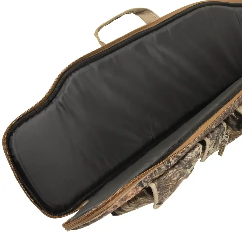 Das Langwaffenfutteral Tejon von Allen ist aus einem extrem robusten und strapazierfähigem HD-Enduragewebe hergestellt. Innen ist es mit einer Polsterung aus dichtem Schaum ausgestattet. Das extra breite Design des Futterals ermöglicht einen großen Stauraum für Waffen mit größeren Zielfernrohren und/oder Zweibeinen. Drei große Seitentaschen dienen zur übersichtlichen Aufbewahrung von Zubehör. Das Futteral hat gepolsterte Trageschlaufen und einen verstellbaren, gut gepolsterten Gurt, mit dem man es bequem auch über die Schulter tragen kann. Es ist durch einen Doppelreißverschluss mittels Vorhängeschloss (nicht inklusive) abschließbar.