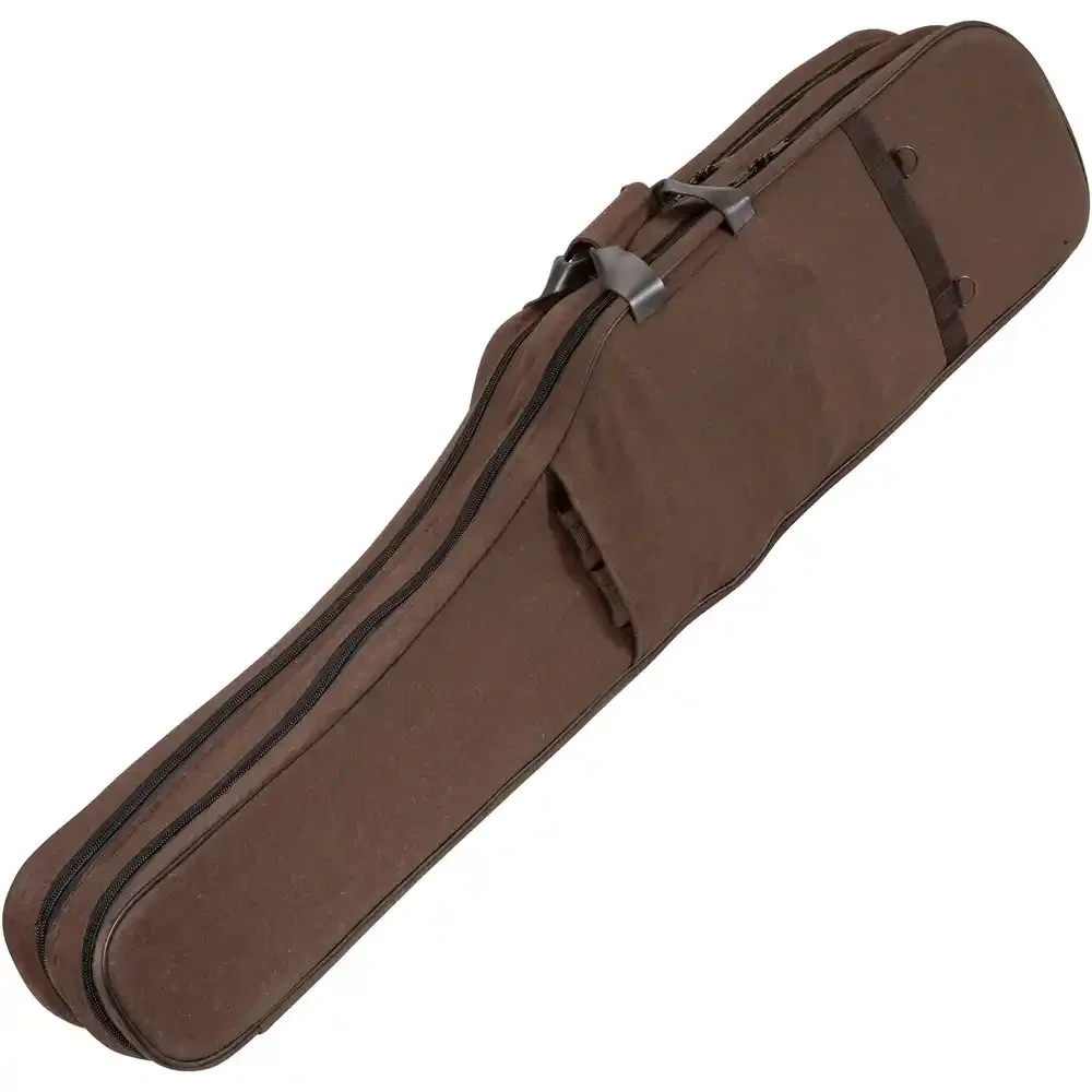 Das braune Loden mit weicher Schaumstoffpolsterung sorgt für eine stoßfeste Beschaffenheit, welche Ihre Waffe und Optik zusätzlich vor Kratzern schützt. Der Boden ist verstärkt, damit ein "Aufscheuern" durch den Lauf verhindert wird (die Verstärkung kann bei Bedarf auch entnommen werden). Beide Fächer besitzen jeweils einen Doppelreißverschluss, wodurch das Futteral mittels Vorhängeschlösser (nicht inklusive) abschließbar ist. In der großen Reißverschluss-Außentasche (Maße 39x20x4 cm) kann zudem Ausrüstung, Munition etc. transportiert werden.
