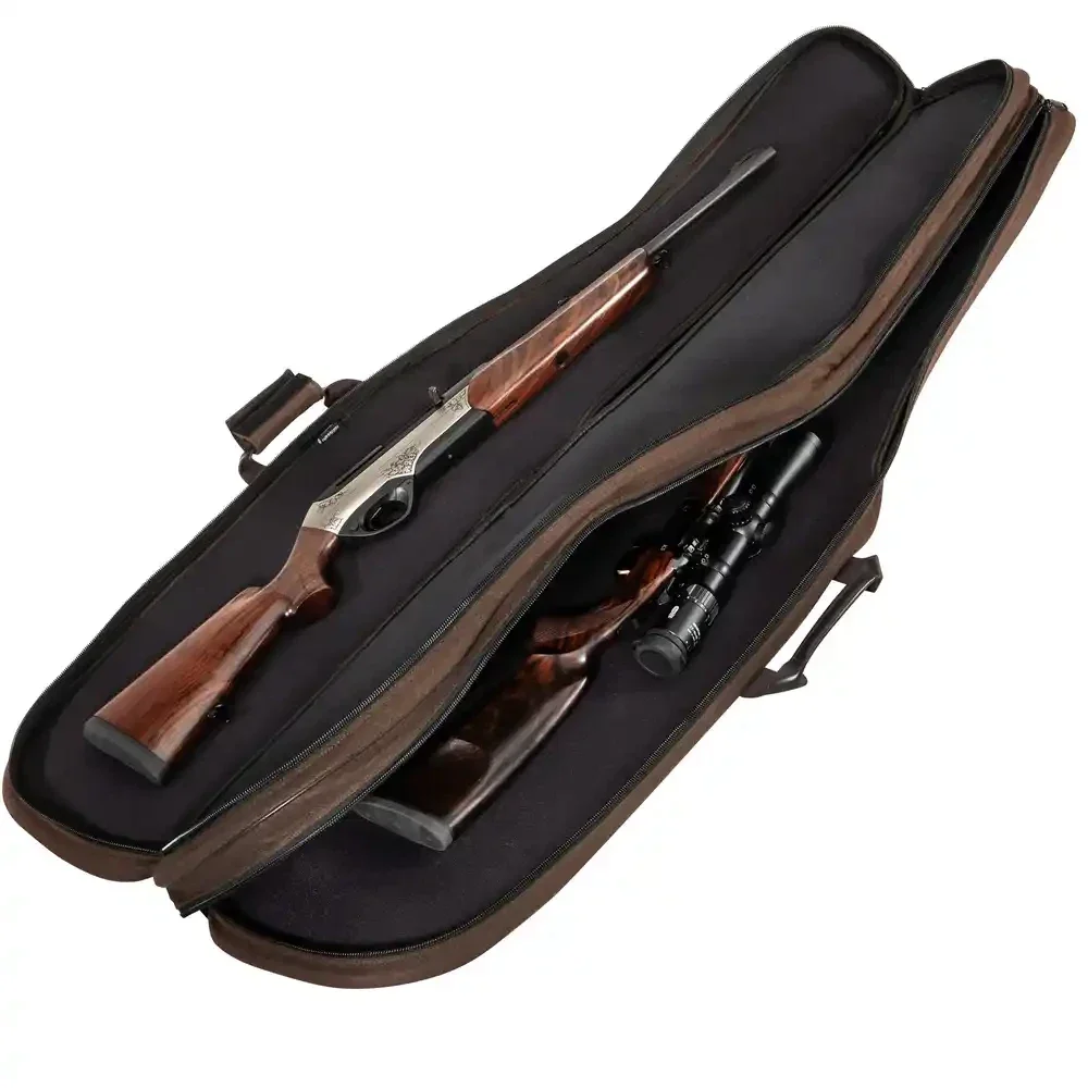 Das geräumige Doppelfutteral bietet ausreichend Platz für zwei Langwaffen mit Zielfernrohr. Mit seiner Innenlänge von ca. 135 cm fasst es auch Waffen mit Schalldämpfer problemlos.