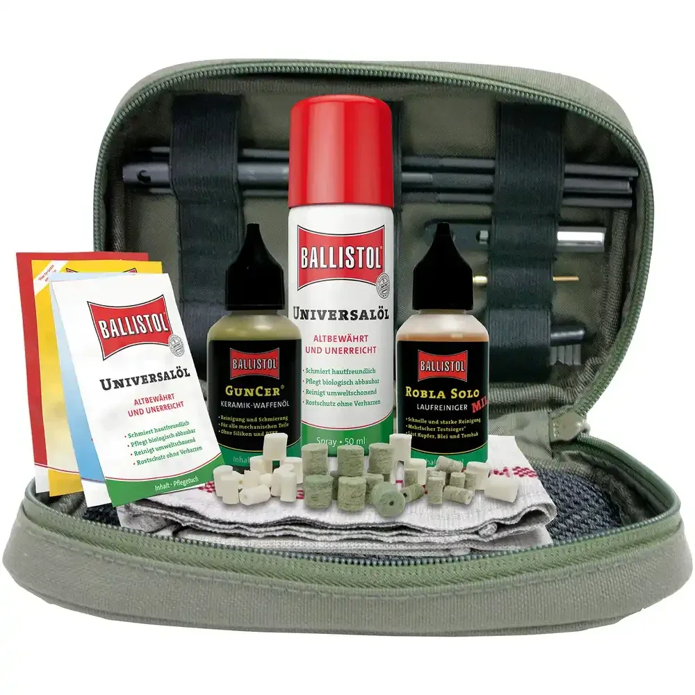 Zur schnellen, mobilen Waffenreinigung für unterwegs. Kompakt in einem Etui zusammengepackt.