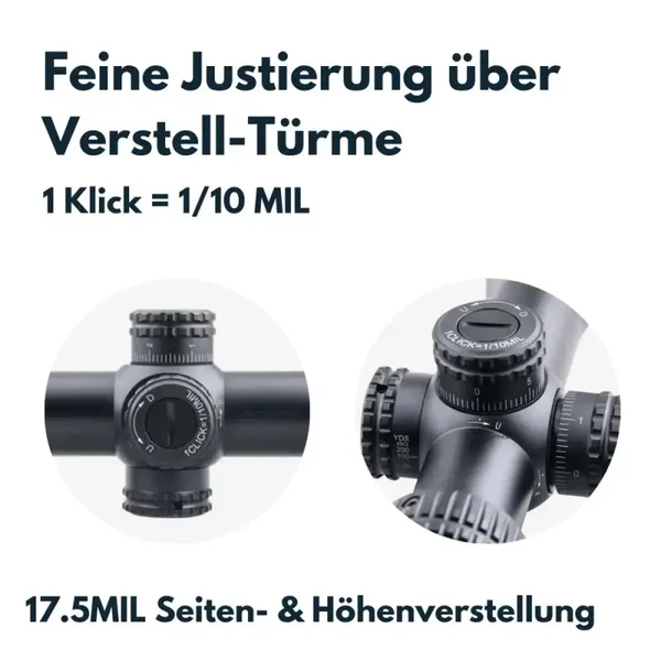 - Parallaxenverstellung: 10Yds (9,144m) bis unendlich