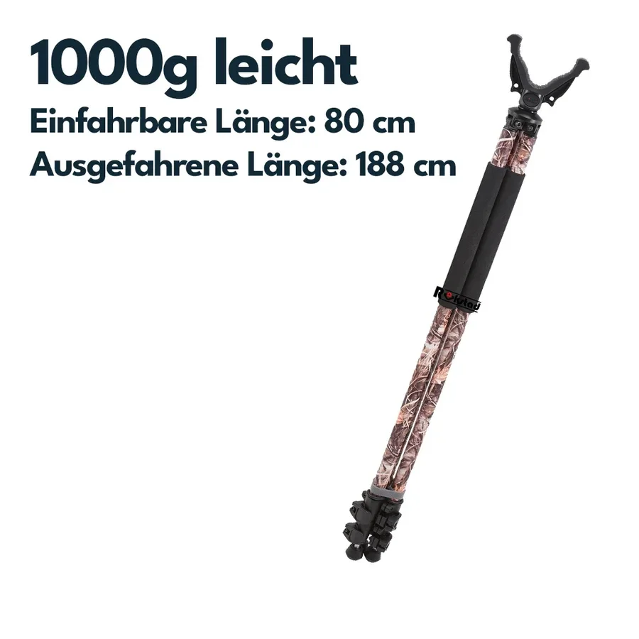 Tragbare, vielseite und stabile dreibeinige Gewehrauflage, kann durch die variabel einstellbare Höhe sitzend, kniend und stehend genutzt werden. V-Mount frei 360° drehbar.
