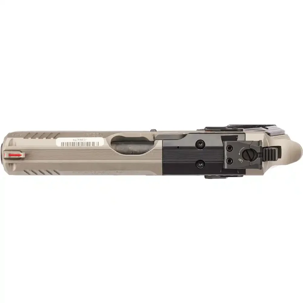 Die Waffe verfügt zudem über ein gut sichtbares rotes Fiberoptikkorn für schnellere Zielerfassung, eine beidhändig bedienbare Daumensicherung und eine reversible Magazinauslösung für Links- und Rechtshänder.