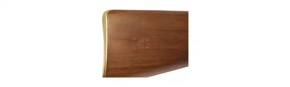 2 Stahl-Laufbänder halten den brünierten PMG-Lauf (Pedersoli Match Grade) mit Treppenvisier. Übrige Beschlagteile aus Messing. Riemenbügelhalterung vor dem Abzugsbügel. Charakteristischer Werghalter an der Spitze des Ladestocks. Schloss und Laufbänder mit Bunthärtung sowie Walnussschaft mit originalgetreuen Kennzeichnungen versehen.