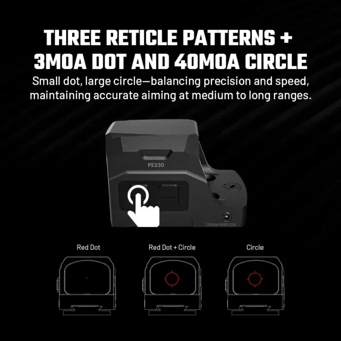 Das Aimwin PE330 Rotpunktvisier kombiniert eine superkompakte Sichtweise mit professioneller Optik, sofortiger Zielerfassung und kampfbereiter Haltbarkeit – entwickelt für Schützen, die jedes Mal zuverlässige Leistung verlangen.