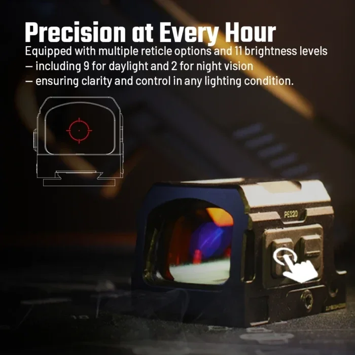 Der voll geschlossene rote Punkt des PE320 gibt Ihnen die Geschwindigkeit, das Vertrauen und die Zuverlässigkeit, die Sie brauchen, wenn jede Sekunde zählt.
